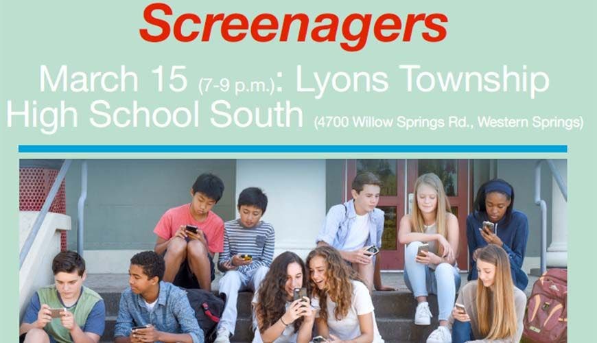 Parent Community Network, in partnership with local area school districts 101, 102, 105, 106, 107, 204, is thrilled to present a free screening of SCREENAGERS: Growing Up in the Digital Age, a documentary about the biggest parenting issue of our time, Wednesday, March 15, 7pm at the Lyons Township High School South Campus Performing Arts Center. Seating is limited; parents and students are encouraged to register at ParentCommunityNetwork.com today.