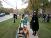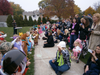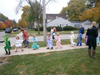 Preschoolers from Grand Avenue preschool and day care beat out the weather on Wednesday, October 30 and paraded around the Community Center and into Vet's park. The children sang songs with music teacher Rick Temple on keyboard.