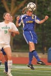 York (16-4-1, 6-0) won the game on a goal scored by Angela Bianchi in the game’s second overtime, on a through-ball from Mary Kate Cicinelli. “I knew I only had one split second to get through,” Bianchi said. “The keeper was coming out to the left so I kicked it to the right.”