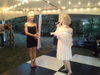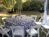 I used 3 tents for her event and created a movie star theme in the lounge area.I had pink champagne flowing in the fountain,and stanchions at the entrance of the tent. I also created a dramatic look with a long white runner and a vintage sofa for guests to sit on. All the posts on the tents where draped to create an elegant look, along with twinkle lights around the tents. I decided to use an accent color that was one of her favorites, and I found a beautiful black and white cake. I floated battery operated lily pads in her pond at dusk and it was magical.