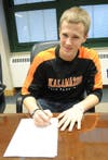The signing students include nine football players, and representatives of baseball, soccer, swimming, volleyball, tennis, golf and cross-country.