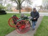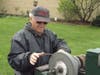 A buck for a small blade. Two for a larger one. His feet pump the pedals of his distinctive red-and-green wagon, spinning its grindstone; his callused, practiced hands file down the cutting tools.