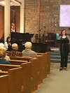 Melissa Raub, Soprano, and Heike Burghart Rice at the piano, took the program into the St. Patrick’s Day realm with “A Little Bit of Heaven”, music by J. Kerrin Brennan; “When Irish Eyes are Smiling”, music by Ernest R. Ball; “Dear Little Shamrock” and Mrs. Murphy’s Chowder”, two traditional Irish folk songs; and “Who Threw the Overalls in Mrs. Murphy’s Chowder”, music by George L. Giefer.