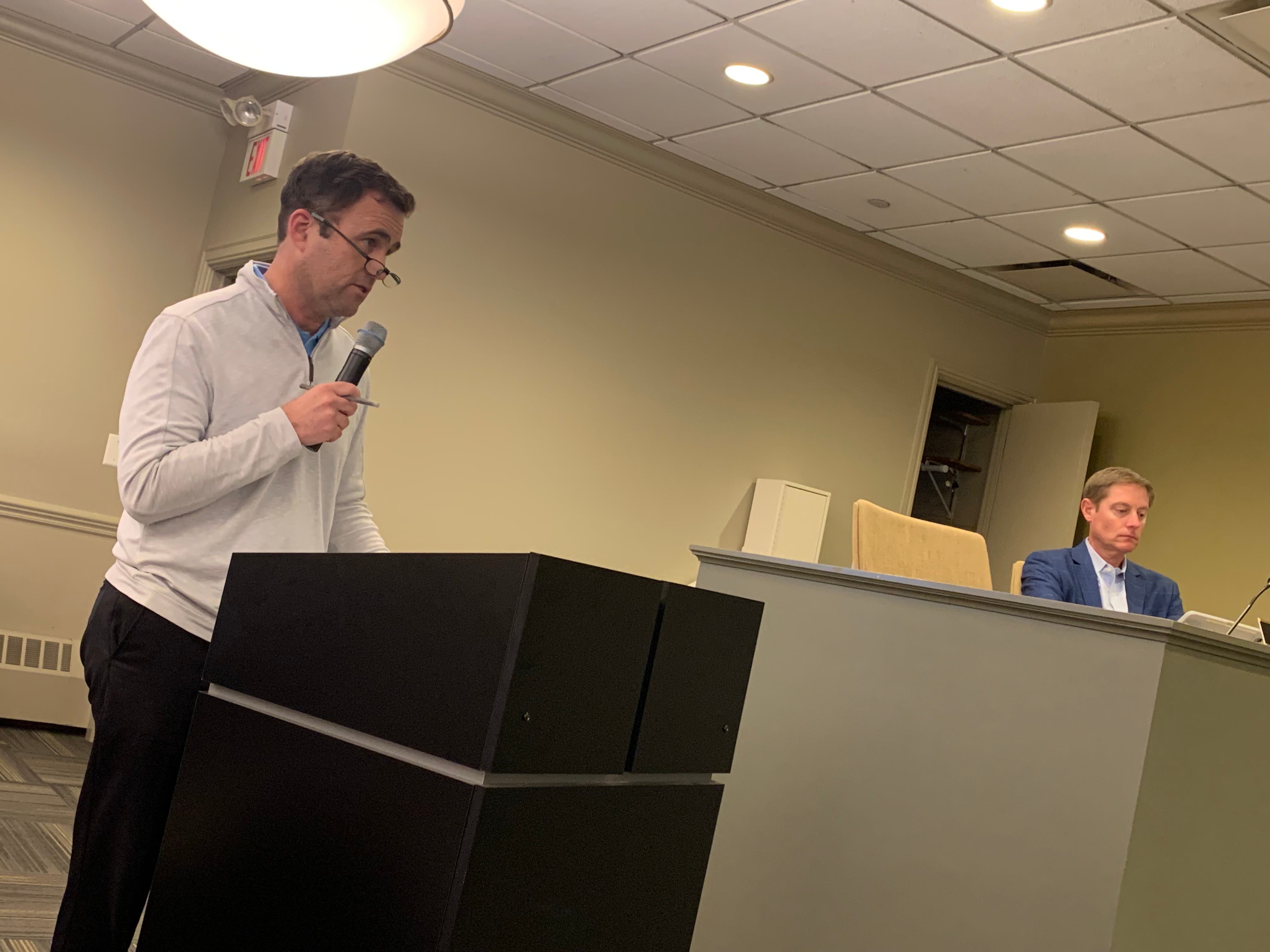 John Barry, vice president of McNaughton Development, told the Western Springs Plan Commission on Monday that proposed townhomes would be an "aesthetic upgrade" for a Wolf Road property. (David Giuliani/Patch)