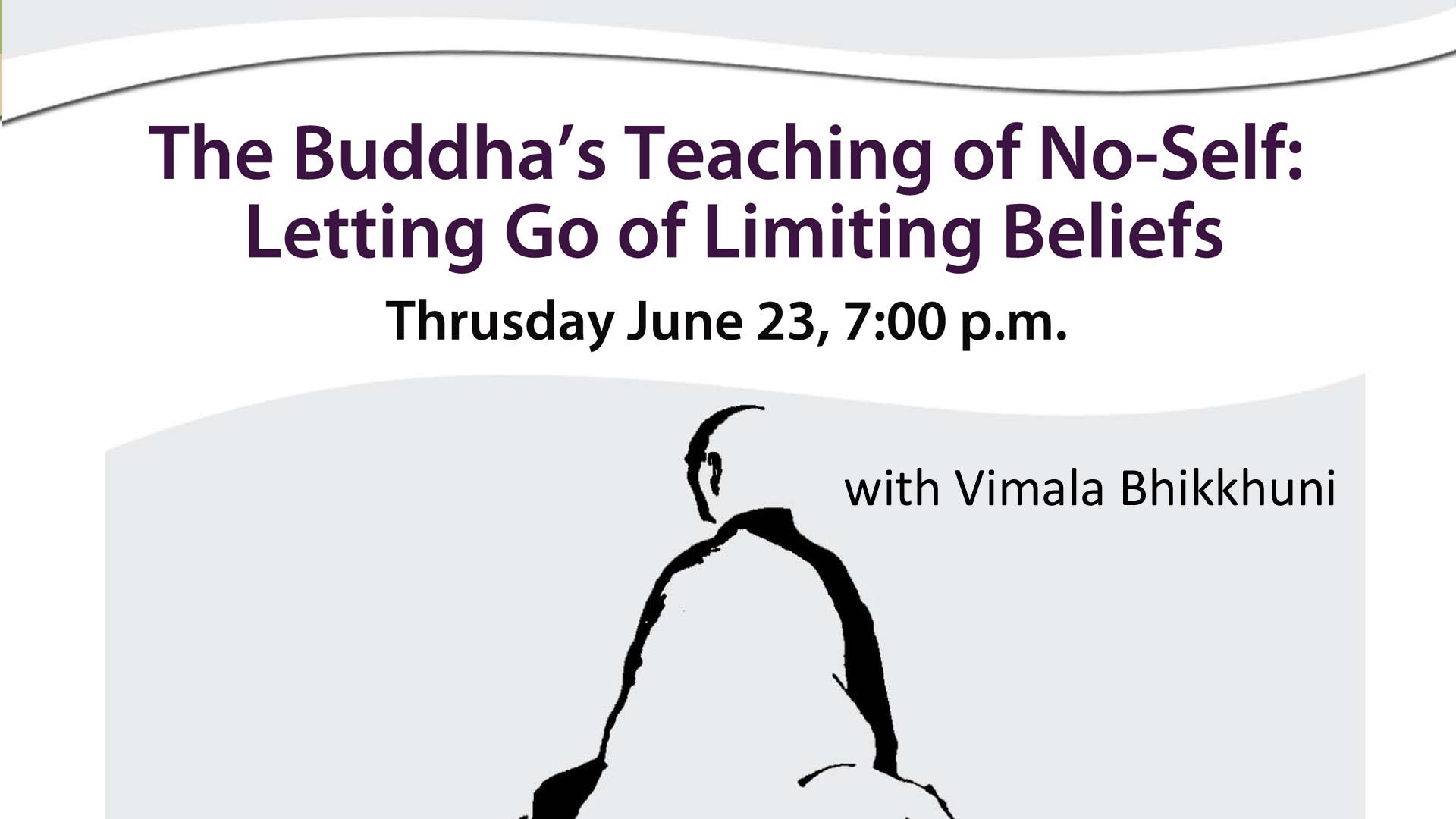 One of the first stumbling blocks that Westerners encounter when they learn about Buddhism is the teaching of anatta, often translated as no-self. Bhikkhuni Vimala will share her insights and understanding regarding this core teaching of Buddhism and show its relevance in our daily lives. By using these teachings, we will let go of our fears and limiting beliefs so we can live happier, more peaceful lives.