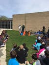 On Friday, April 21, students at Madison Elementary celebrated both Earth Day and Arbor Day by planting two trees on school grounds. The trees were donated by the Morton Arboretum and the students learned about the importance of trees. Volunteers had a chance to help with the planting. Todd Jacobson, who is a Madison School parent and Head of Horticulture at the Morton Arboretum, arranged for this special event to take place. The Morton Arboretum also provided one coupon for a free admission to each student. Their mascot, Jumpy the Squirrel, visited and entertained the kids while they helped with the tree plantings.