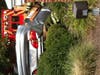 A witness on the scene said the accident appeared to be a single-car accident. Local business bystanders extinguished the car fire until crews arrived.