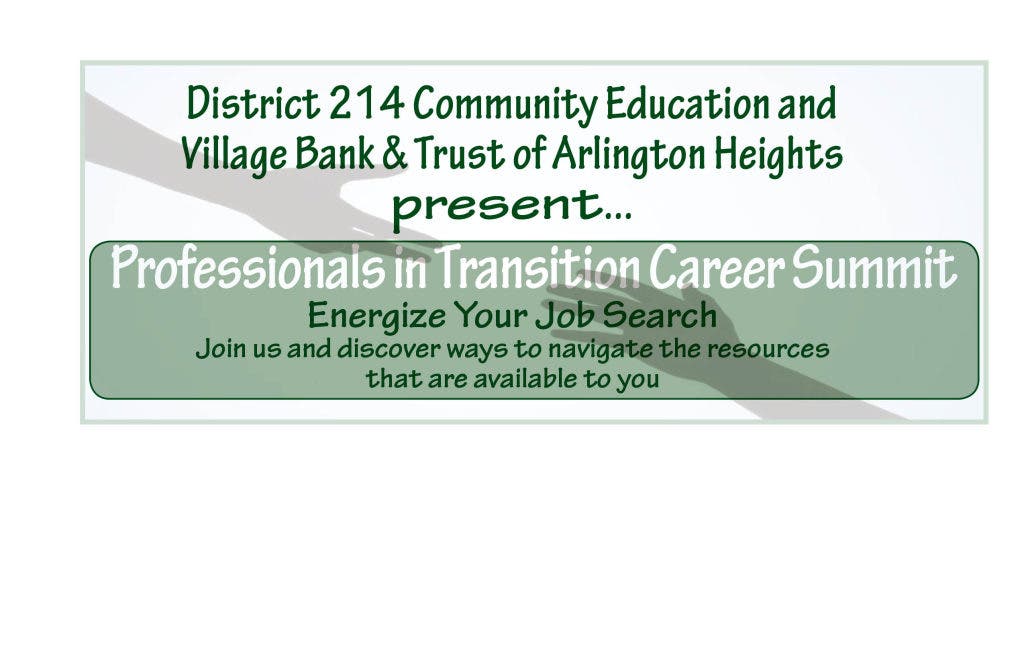 Energize your job search! Discover ways to navigate the resources that are available to you! District 214 Community Education and Village Bank of Arlington Heights present