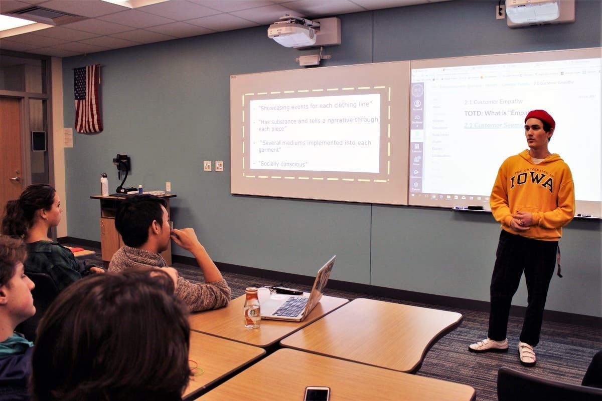"The goal is for the students to eventually pitch a business idea," said business education faculty member Matt Mersch, who teaches the course. "Working with mentors and coaches will give the students multiple opportunities to discuss and present their ideas to someone outside of school in advance of a business pitch."