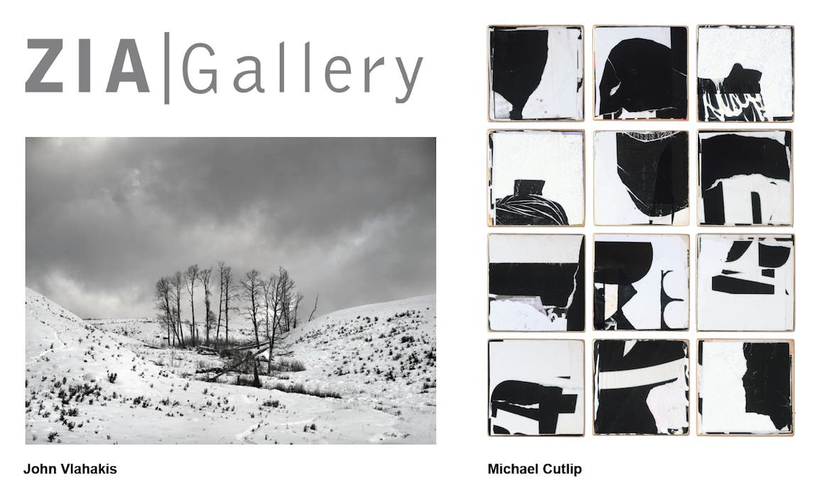 Opening October 17, ZIA Gallery is pleased to present the dynamic collage/paintings by Michael Cutlip and meditative photography of John Vlahakis.