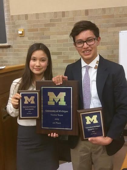 The team of Roland Kim and Marcos Nordenstahl also finished with a 6-1 record and advanced to the semifinals. Claudia Levens and Jackson Miller won five of their seven rounds to earn a spot in elimination rounds and finished in the sweet sixteen. Miller was the 25th overall speaker at the tournament. Last, but not least, Morgan Harden and Lauren Wittenmeyer advanced into the top sixteen teams with a preliminary record of 5-2. Freshman Richard Jo was also awarded with the 24th overall speaker. This is the best that New Trier has ever fared at the University of Michigan tournament. While making up 10 percent of the total number of teams, the freshman pairs comprised a full 25 percent of the teams advancing to elimination rounds.