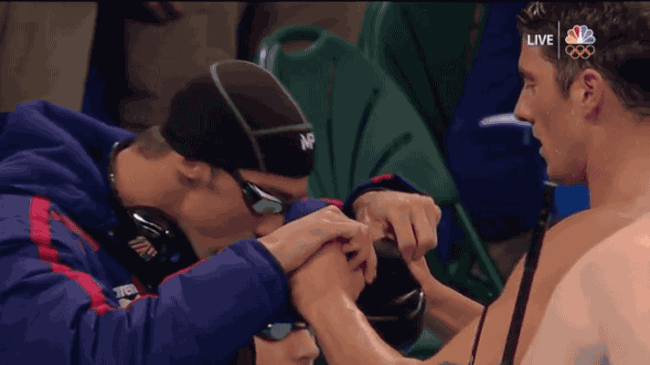 "He was a little rattled, looking around for a cap," Dwyer said. "I gave him mine. It fit really well, and I think that's one of the only times a cap has swam twice in a relay, so Mike owes me one. I think we're going to frame both caps and sign them."