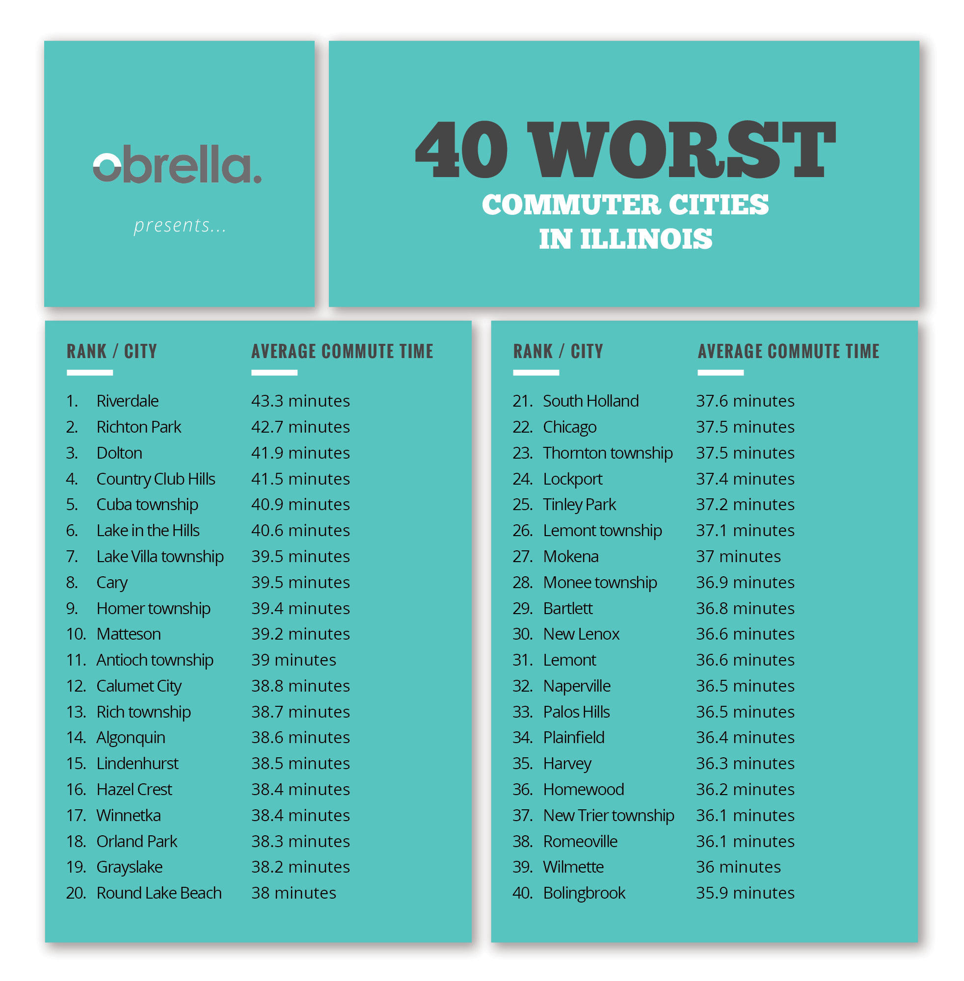 “Whether it’s because they live far from their workplace, face heavy traffic congestion, or a combination of the two, the average resident of the state’s worst commuter cities spends 20 more minutes getting to work than the typical resident of the best commuter cities in Illinois,” an explanation of Obrella's 2015 study stated on its website. “But, there are several reasons why people choose to endure a long commute, like affordable housing and good schools, so we bet living in one of these communities offers its share of perks.”
