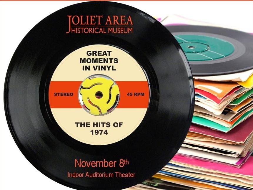 Great Moments In Vinyl performs a live tribute to "The Hits of 1974" in the Joliet Area Historical Museum's Indoor Auditorium Theater venue on Friday, November 8th at 7pm (doors open 6:15pm).