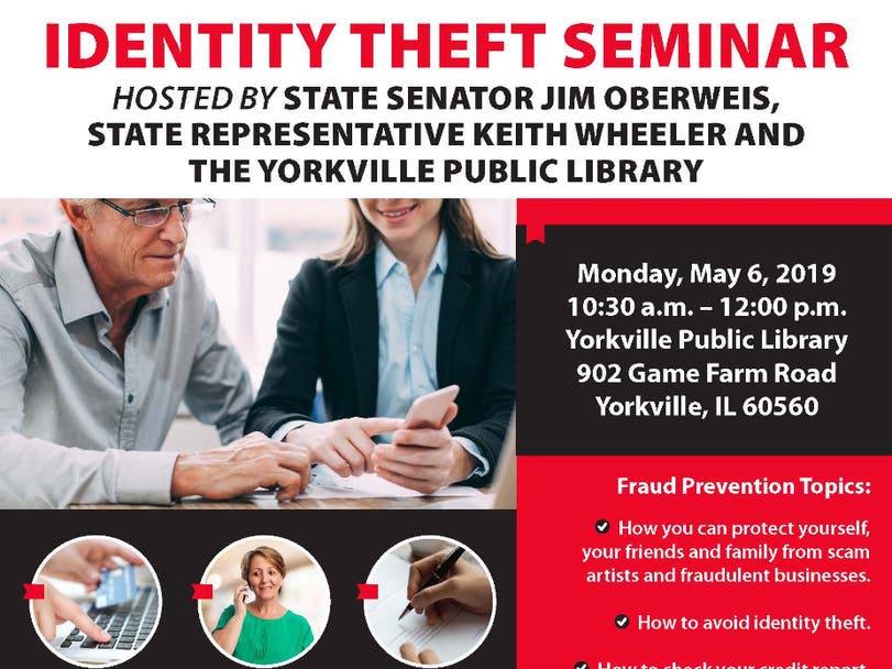 The Identity Theft and Consumer Fraud Prevention Program is scheduled from 10:30 a.m. to 12:00 p.m., May 6, at the Yorkville Public Library, 902 Game Farm Road.