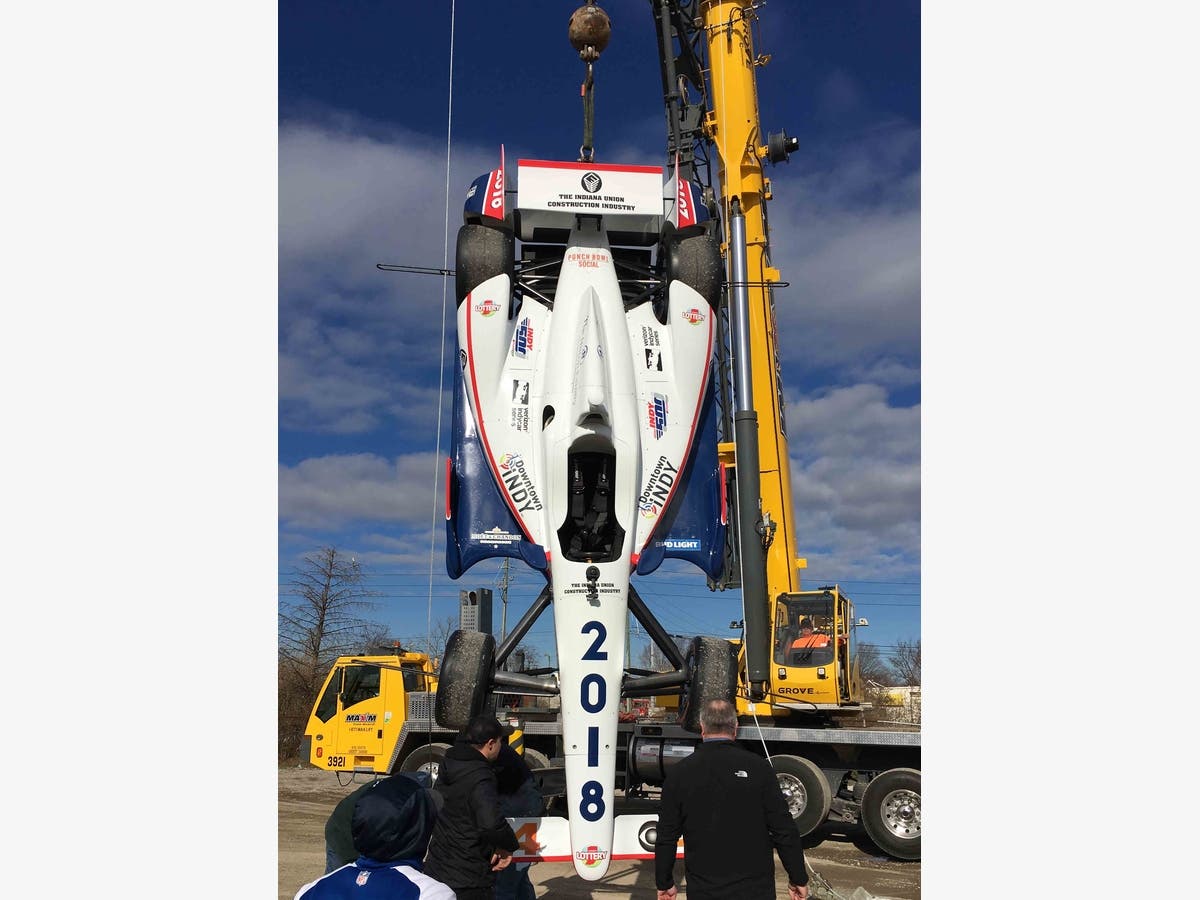 DII said the IndyCar (pictured) that will be hoisted high above the crowed and descend to a collective crowd countdown, will be the main focus of the city's fun through the (the new year). It was tested at Maxim Crane Works lot.