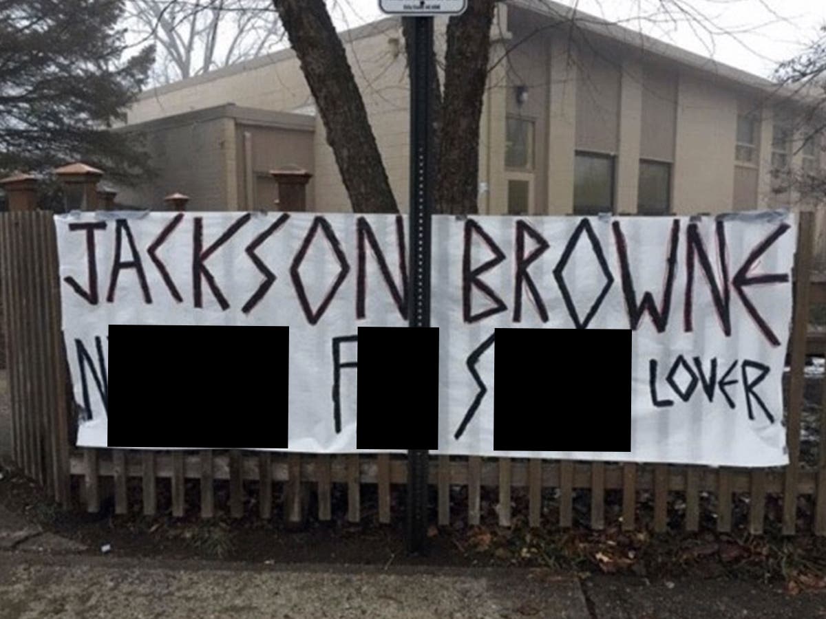 One banner referenced Jackson Browne, known for progressive stances. Painted on a large roll of paper, it read "Jackson Browne ni---- f-- sp--- lover." The J&C reported it is unknown why Browne was referenced, but in May 2017, West Lafayette police received complaints about fliers distributed that contained an anonymous death threat to Browne.