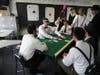 Craig Walter, a science teacher at the school, was a black jack dealer known as "Fast Eddie" on Friday. He hadn't read the book, but that didn't stop him from playing along.