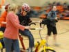 Thursday was the first time students saw Quinn ride the bicycle they helped buy.
