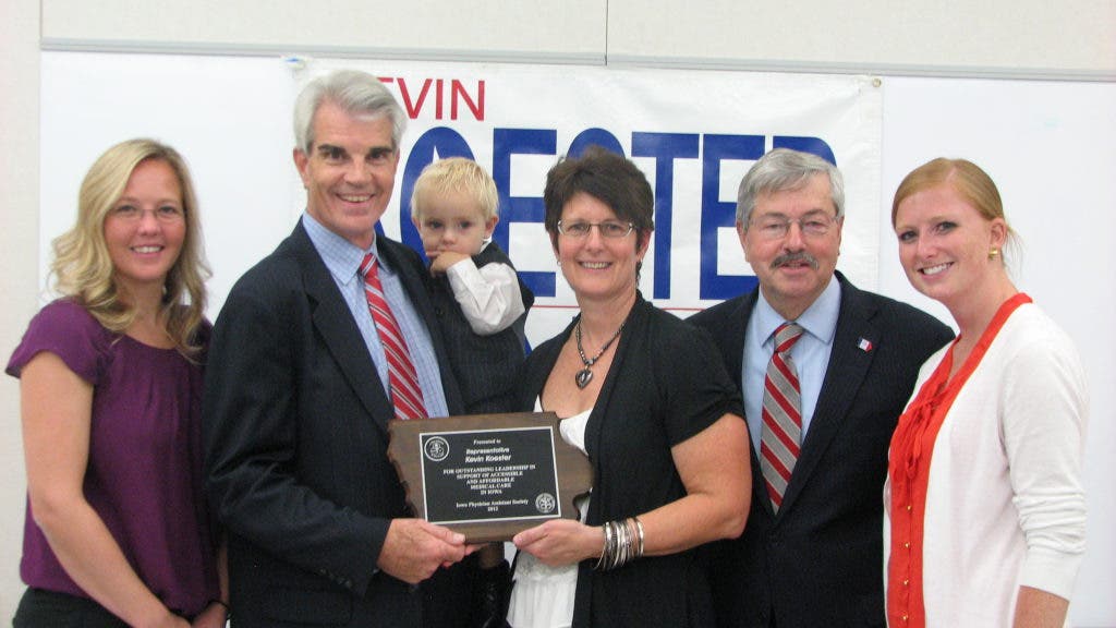 “Representative Koester has become a leader in improving access to quality health care,” said Laura Delaney, President of the Iowa PA Society. Laura is a PA and assistant professor who teaches at Des Moines University and practices at the Bilgi Children’s Clinic in Ankeny. “Representative Koester is a legislative leader who recognizes a problem, consults with constituents, and then acts to make a difference. That is how he led the way to passage of legislation that improves access to medical care by encouraging physician – PA team practice, especially in small towns.”