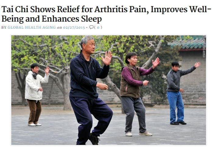 In the study, 354 participants were recruited from 20 sites in North Carolina and New Jersey and randomly assigned to two groups. The intervention group received the 8-week, twice-weekly Tai Chi course immediately while the other group was a delayed control group. All participants received baseline and 8-week follow-up evaluations. To be eligible for study, participants had to have any type of self-reported, doctor-diagnosed arthritis and able to move independently without assistance. However, they did not have to be able to perform Tai Chi standing. They were eligible for the study if they could perform Tai Chi seated, Callahan said.