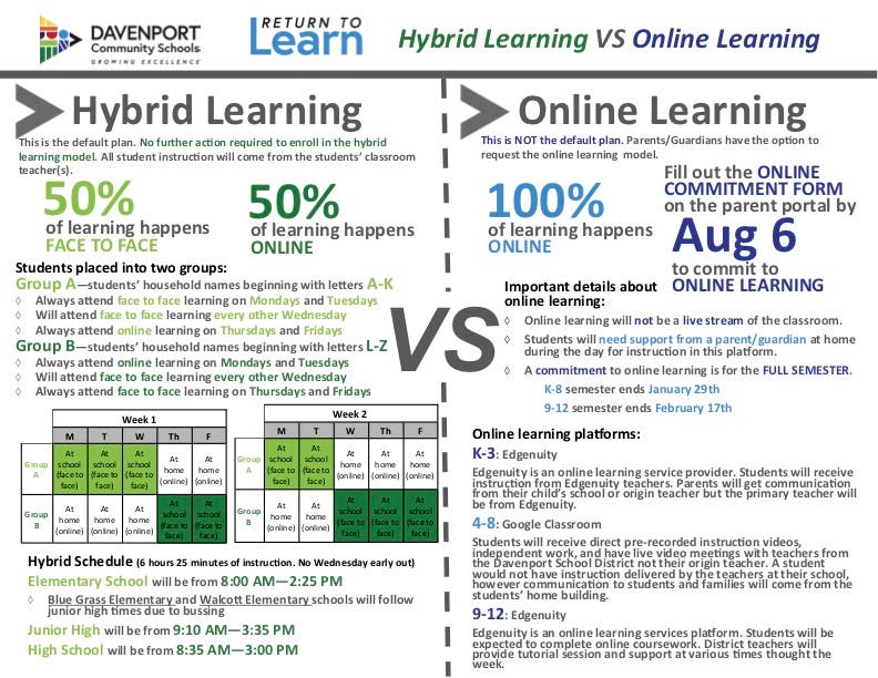 Hybrid Model VS. 100% Online Learning Model In Davenport