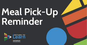 Please remember that online-only student meal pick-up for pre-ordered meals is every Tuesday between 11AM – 1PM at the Davenport Learning Center (DLC).