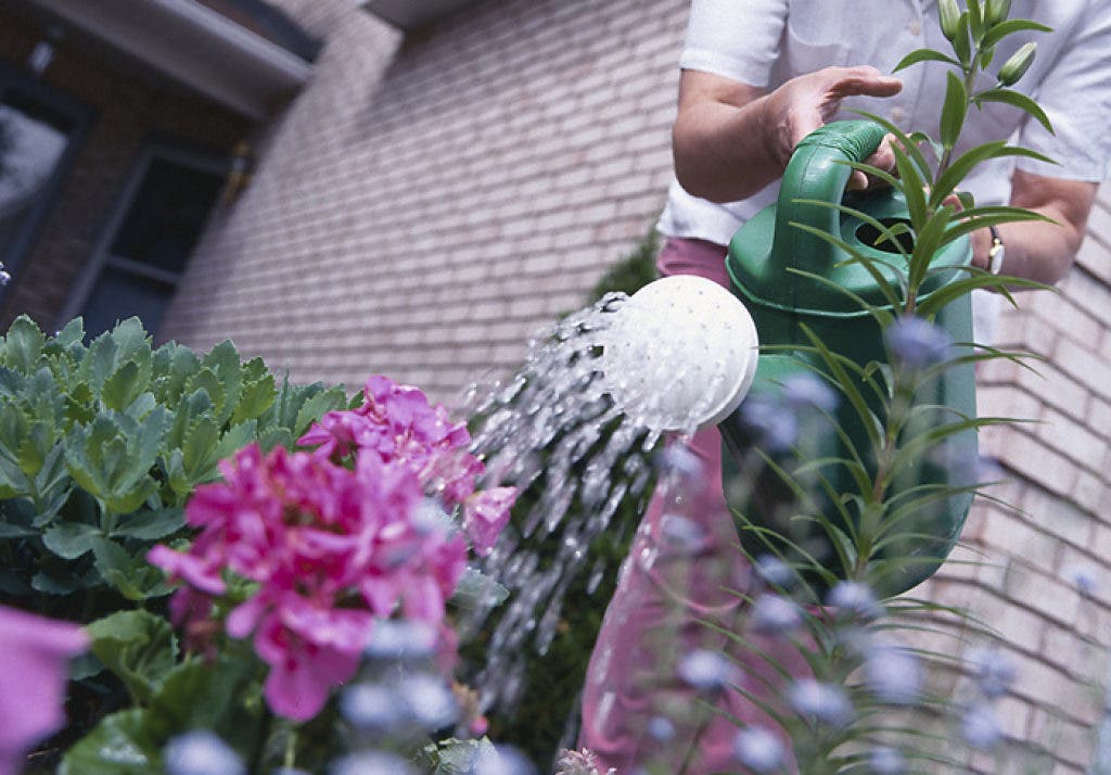 Don’t crowd too many plants into containers, or use large containers for large plants. This will help keep them from drying out so often, and requiring watering daily or more often.