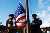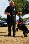 A K-9 dog demonstrated bite techniques for the crowd.