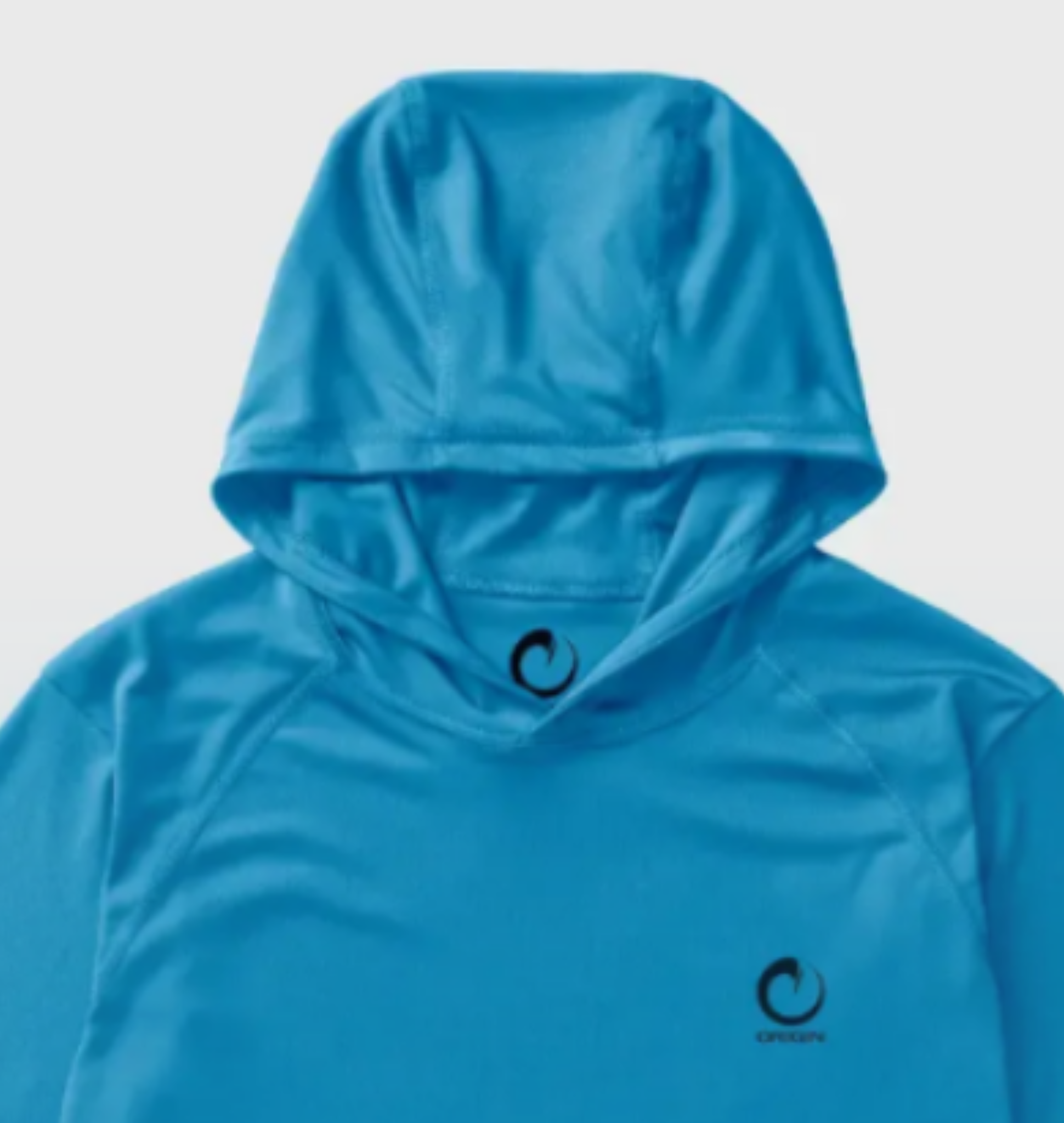 He is wearing a light blue hoodie made by Origin with the company’s logo printed in black.