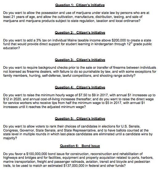 These are the six Maine referendum questions this year: