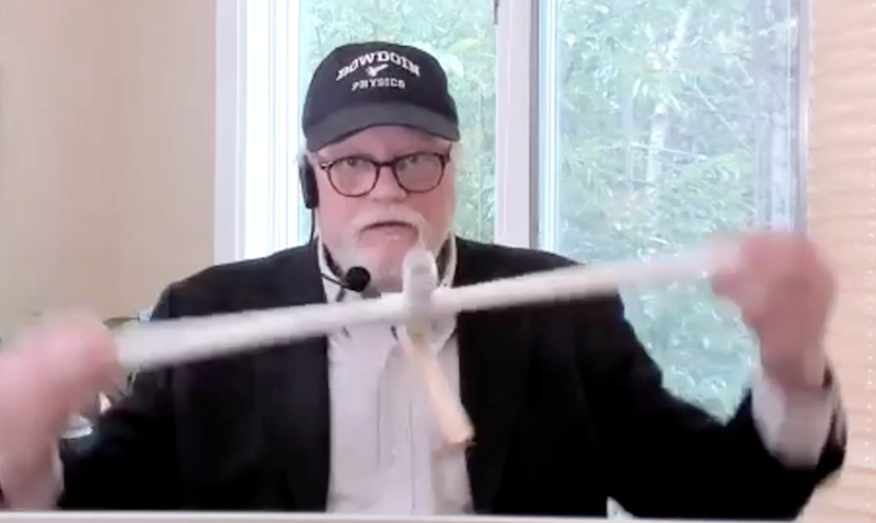 Paul Howell, demonstrating an inertia gadget he invented for his physics lab. He is also an astro-photographer and supplied the photos for this story.