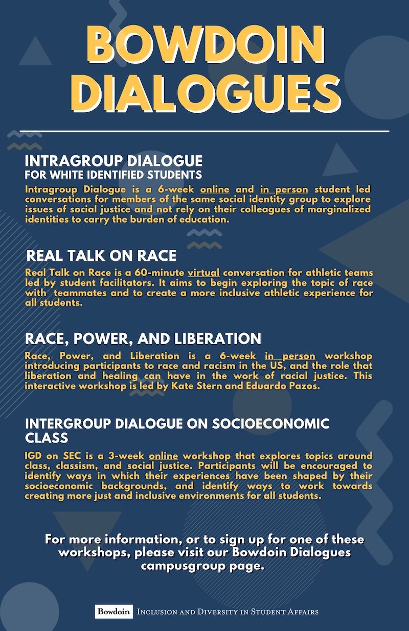 Bowdoin Dialogues is focusing again this semester on engaging students in discussions aimed at combatting racism in the US.