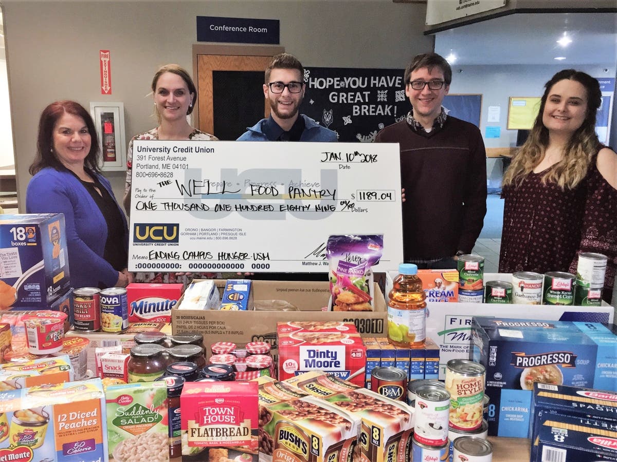 ORONO, Maine – During a December initiative, University Credit Union (UCU) brought attention to the pervasive problem of food insecurity among college students in Maine by launching a statewide awareness campaign, raising more than $8,100 for the five University of Maine System (UMS)-based campus food pantries: