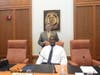 White is quiet and reserved but was clearly interested in his day's task. He shook hands with the council members and took his place at the mayor's seat before the meeting, reading over his notes.
