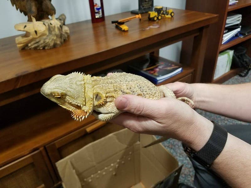 LOST LIZARD LOOKING FOR OWNER Today, around 11:30 am, members of DPW located this lost lizard, wandering alone... https://t.co/VrTgR384BI