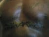 Across his abdomen is the word "Tranzformer," a gift from a friend two days earlier.