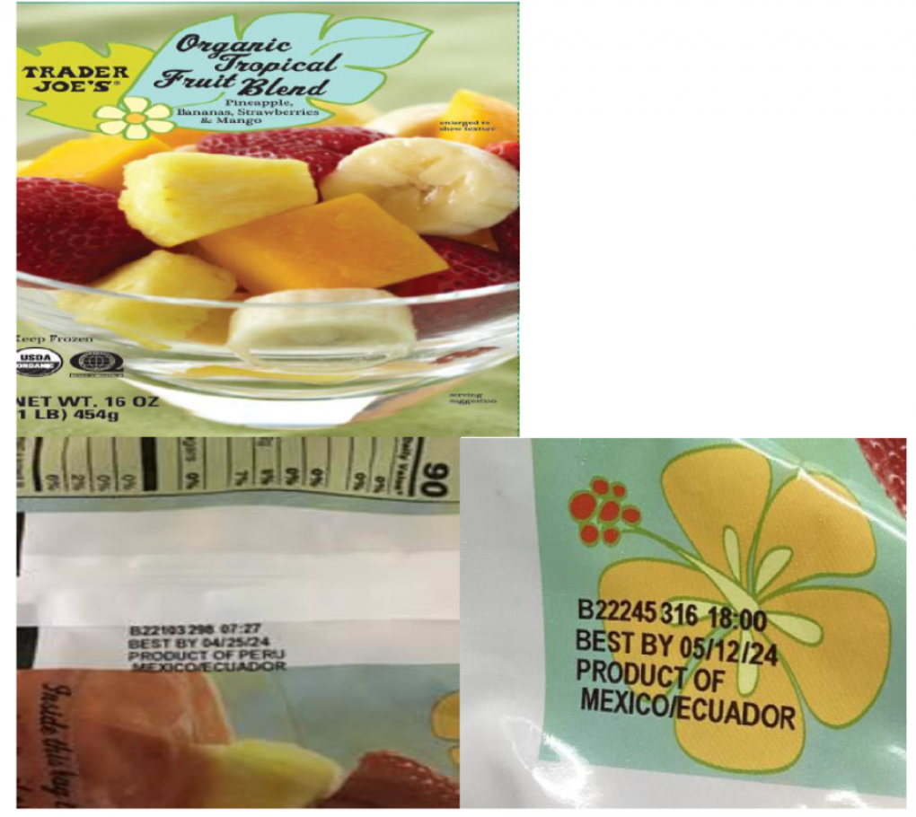 Trader Joe's stores nationwide sold a 16-ounce tropical fruit mix distributed under the “Trader Joe's” brand with the UPC code 00511919.