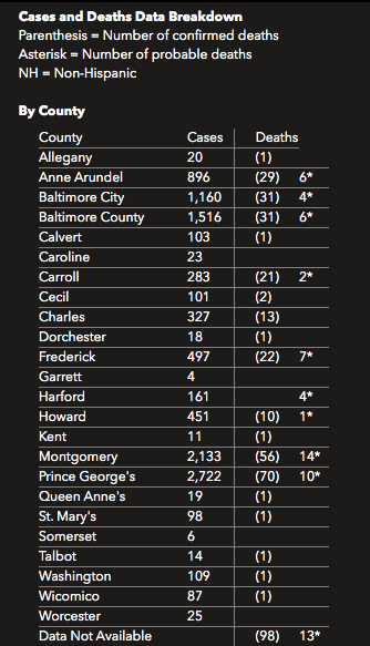 More information about coronavirus testing and symptoms is available from the Maryland Department of Health.