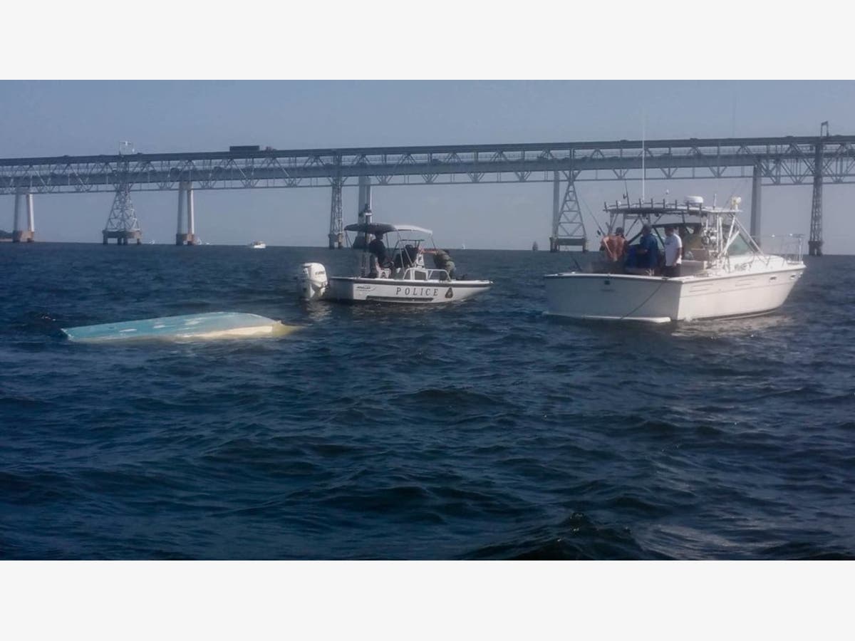 Good Samaritan boaters pulled two people from the water south of the Chesapeake Bay Bridge Thursday, officials say.