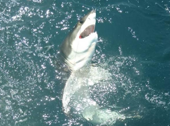 »Photo of great white shark used with permission of John French with Over-Board Fishing
