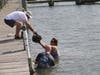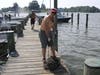 Wallace and another volunteer dipped into the water to safely place the bags that weighed about 15 to 20 pounds each onto wooden pallets in the water along the marina's dock. Those oysters are awaiting a permanent home in other waterways on this side of the bay, said Kevin Green of Hillsmere. Green serves on the community's environmental and security committee, as well as on the South River Federation board.
