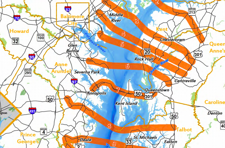 - Corridor 8: US 50/301 between Crofton (Anne Arundel County) and Easton (Talbot County).