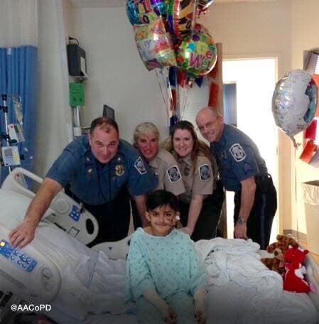 Hilda Sotelo wrote on the police page: “I want to thank the AACPD and AACAC for all the support and encouragement they have for Matthew! We will treasure all you have done for him. You have given him a reason to get better quickly, to go home and try out his new bike and scooter and the many gifts you brought him! Thank you so much!”