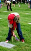 About 500 people placed flags on 23,000 graves, said Scoutmaster Denise Boebert.