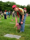 Troop 91 was there to complete a service project that consisted of placing flags on graves. They were joined by hundreds of others, including veterans, friends and families of the fallen, Cub Scouts, Girl Scouts, and other Boy Scout Troops.