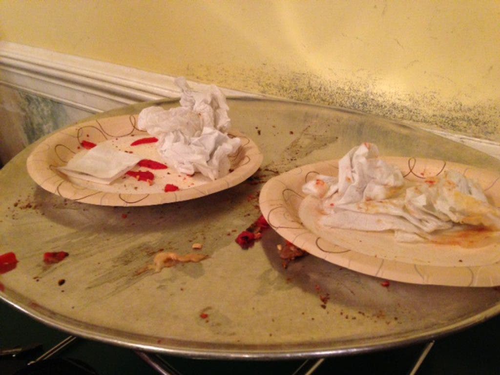 I also apologize for the lack of pictures associated with this post. I literally dove head first into this pizza when we got it and all I have to show for it is this one pizza-less picture.