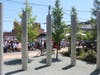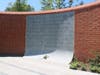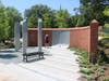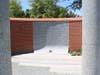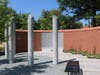The new structure at Newman Park features five cement pillars, one for each life lost, arranged in a semicircle. The columns face a rounded brick wall, which showcases the words of the First Amendment and a plaque displaying the cover of the newspaper the day after the assault. The front page led with the headline "5 shot dead at The Capital" along with the photos of each victim: