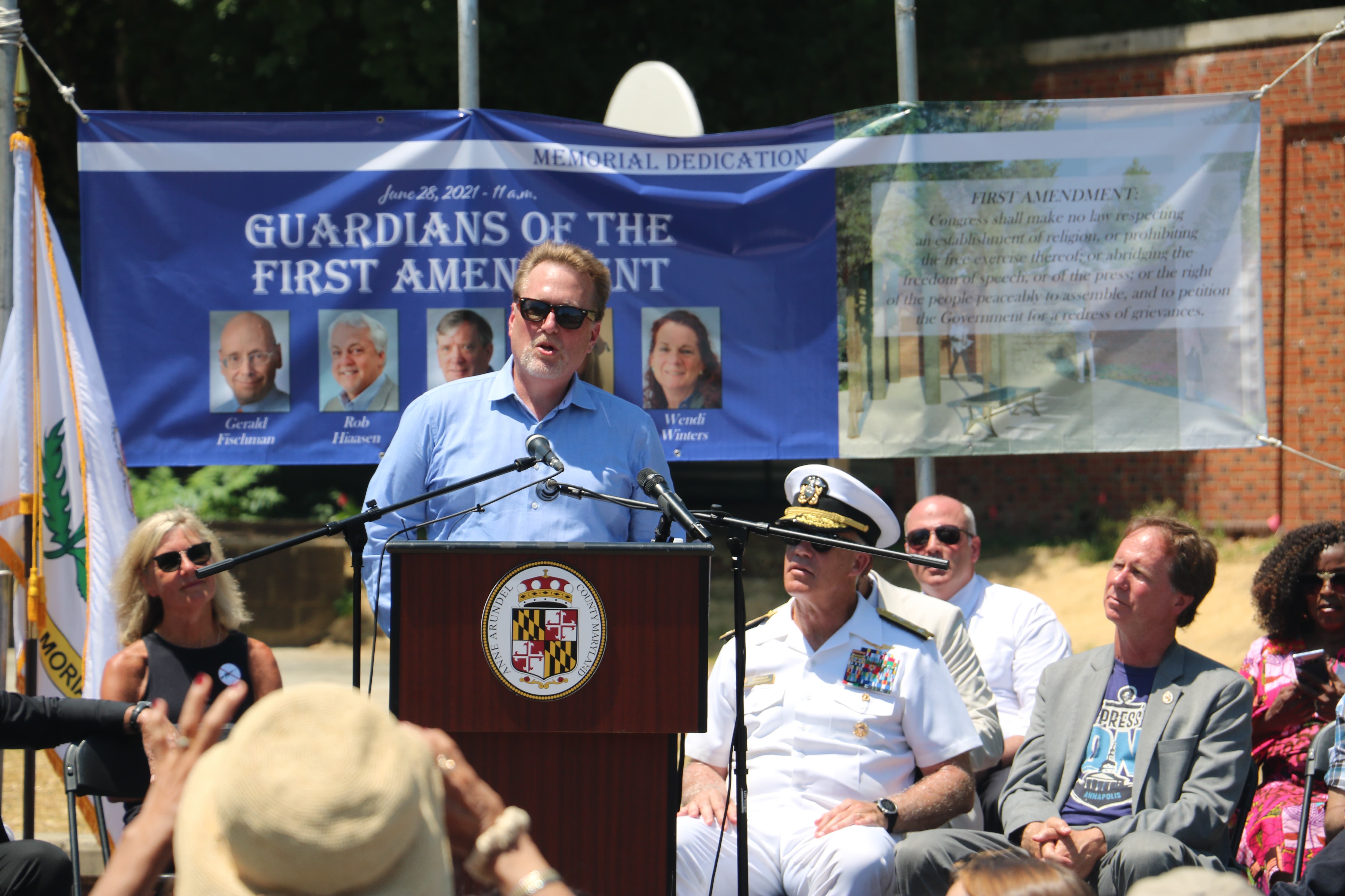 "Without a free press, we can't have a functioning democracy," Annapolis Mayor Gavin Buckley said in a speech. "A free press holds politicians, like me and those of you out there, accountable."