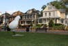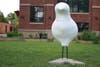 Unlike real chickens, the sculptures are made from wood and fiberglass foam painted white. They stand on metal legs with large, concrete feet. Buckley said the chicken outside Lemongrass won't remain white for long.